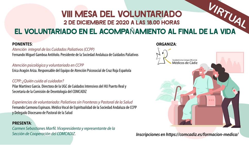 VIII Mesa del Voluntariado, organizado por el Colegio de Médicos de Cádiz. Formato virtual.